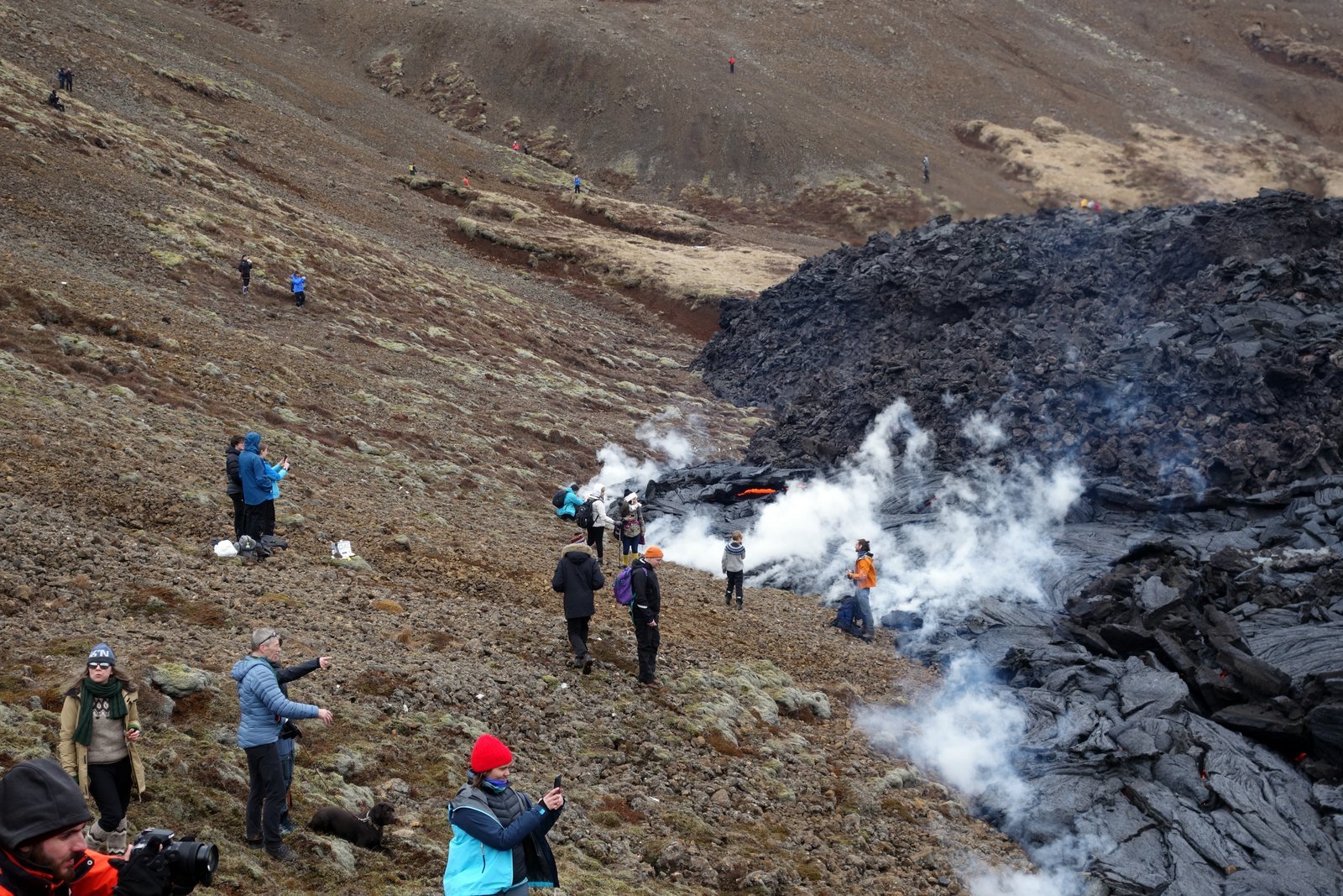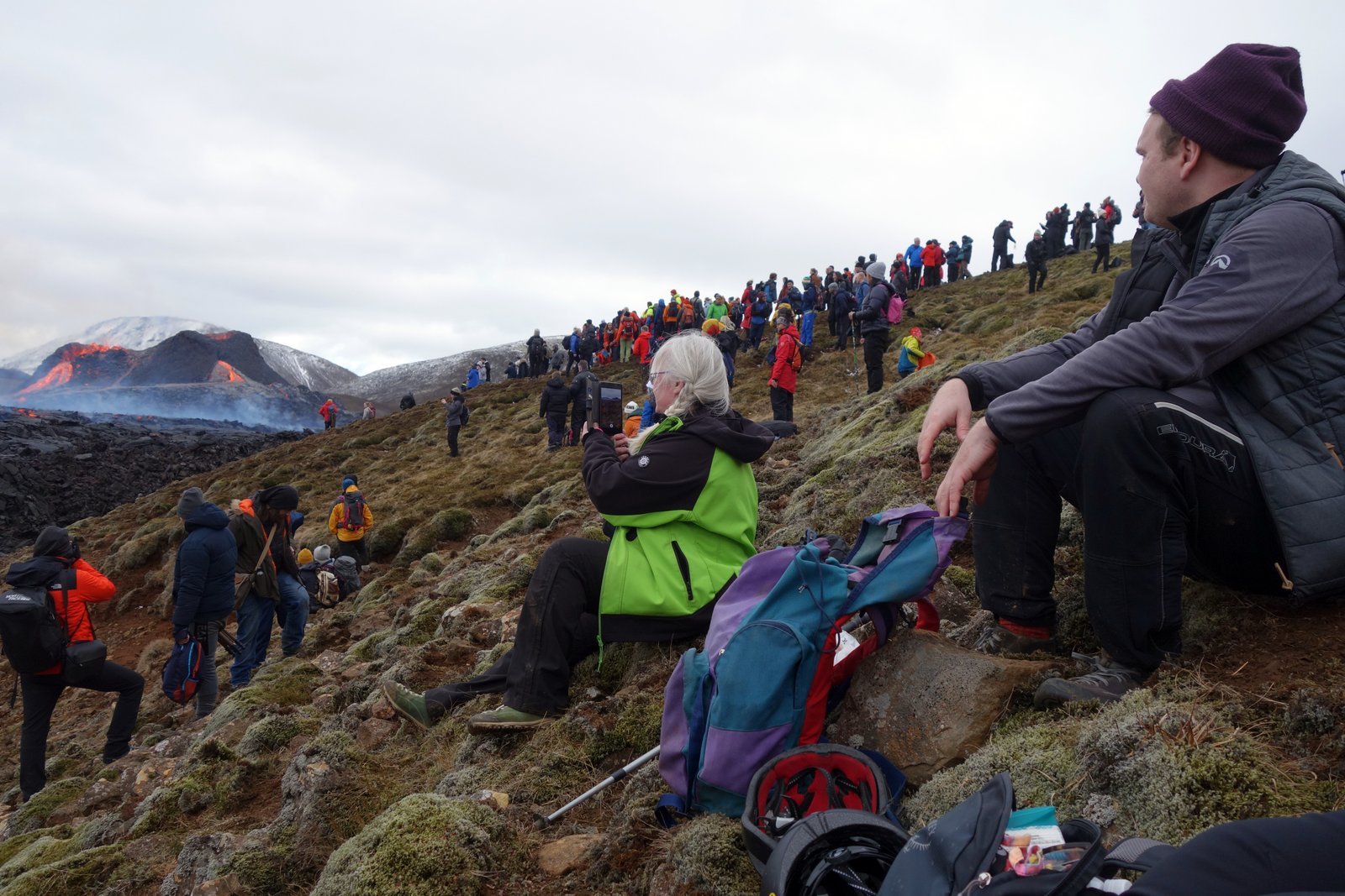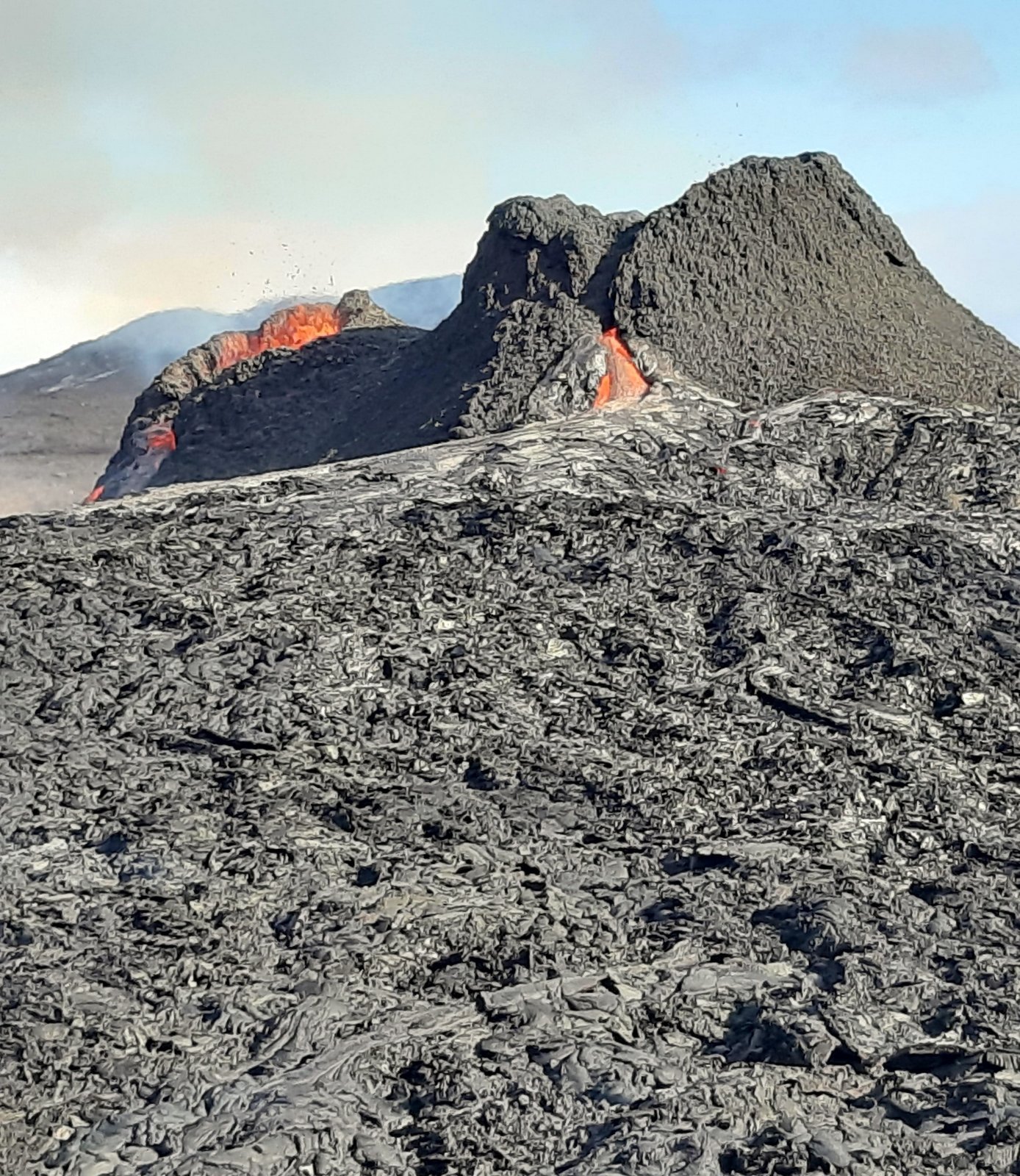 Það eru ekki allir sem ná að setjast í brekku alveg við eldgos, finna hitann á andlitinu og hlusta á skvampið, brakið og brestina sem móðir Jörð gefur frá sér. Við dvöldum í tæpa tvo tíma við gosið, fengum meira að segja einn þokkalegan jarðskjálfta á meðan við sátum dáleidd við stóra arineldinn, en að lokum urðum við að slíta okkur frá og feta okkur niður í mót. Eftir göngu er gott að liðka sig með því að hjóla, og við enduðum daginn á að hjóla slóða austan við Ísólfsskála. Deginum lauk á American Style, fátt betra en gúffa í sig hamborgara, franskar og kokteilsósu eftir ánægjulegan dag.