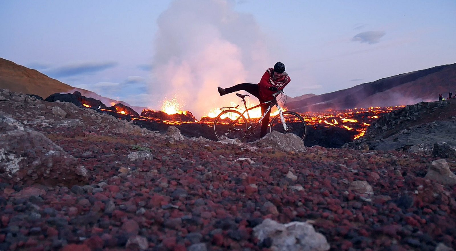 Ég hjólaði allar helstu leiðir á sem voru færar reiðhjólum sumarið 2021 og þess vegna vissi ég hvar best var að fara til að koma að gosinu þegar það hófst. Gasmengunin getur verið hættuleg ef vindátt er óhagstæð og ef reykurinn fer undan vindi í ranga átt, þá er ekkert útsýni og þar eð fólk þurfti að ganga eða hjóla yfir 20 km til að komast að gosstöðvunum, þá var nauðsynlegt að það væri skaplegt veður.
