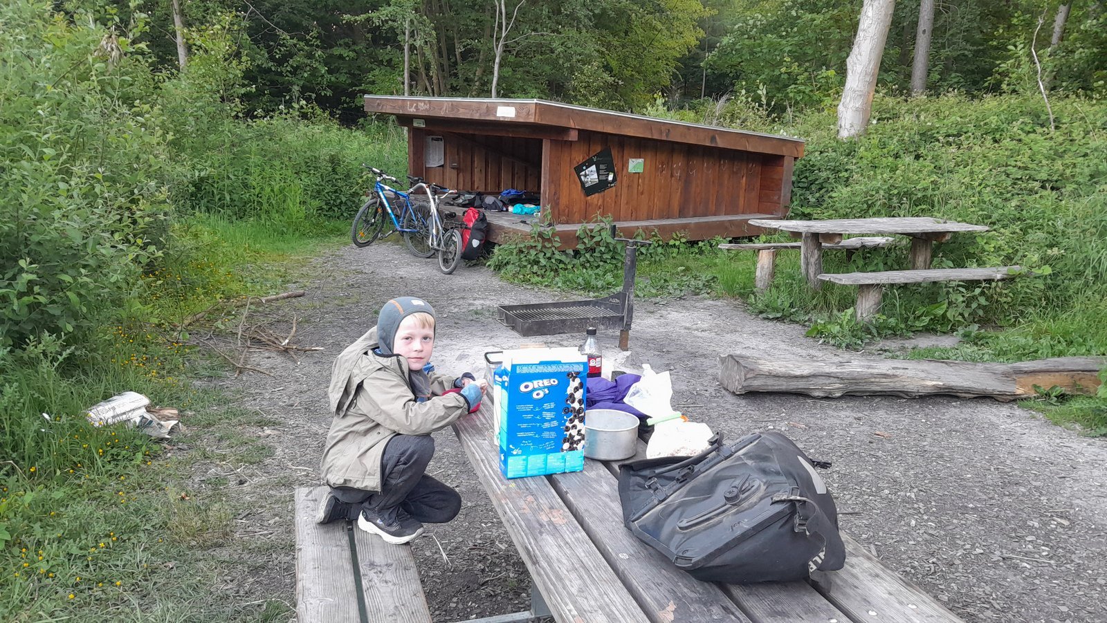 Við gistum í tjaldi, hjá ættingjum og vinum og hjá Warmshowers gestgjöfum, helst með börn á svipuðu reiki, og í Danmerkurtúrnum vorum við samtals eina nótt á hótel og aðra í AirBnB, en annars greiddum við fyrir gistingum í hvorugum túrnum utan skipulegra tjaldsvæða.