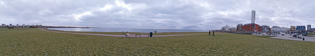 - Panorama mynd í vestur. Eyrarsund og Turning torso. Eyrarsundsbrúin í fjarska.