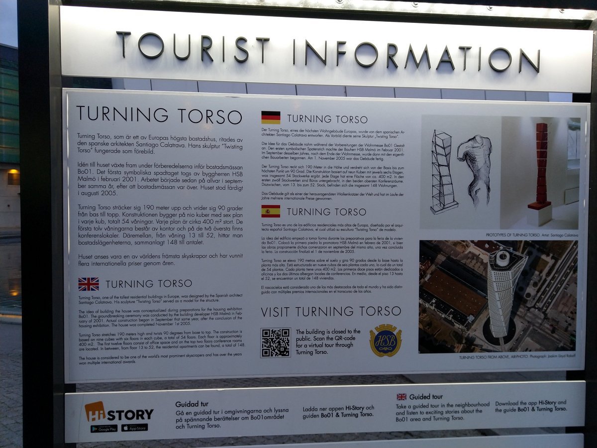 - Upplýsingaskilti við borgarhjólin í Malmö. 16. Upplýsingar um Turning torso.