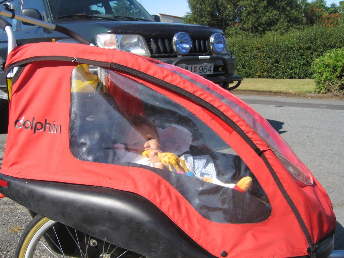 Barnastólinn notaði ég takmarkað enda bara fyrir eitt barn og engan farangur. Hann er samt mjög heppilegur fyrir akkúrat það. Ferðalag í Húsdýragarðinn er frábært með hjólavagninn. Við komuna er nefhjólið sett undir þannig að vagninn verður að kerrunni sem rúllar með inní garðinn, því þarf ekki að raska rónni þó einhver sofni á leiðinni.