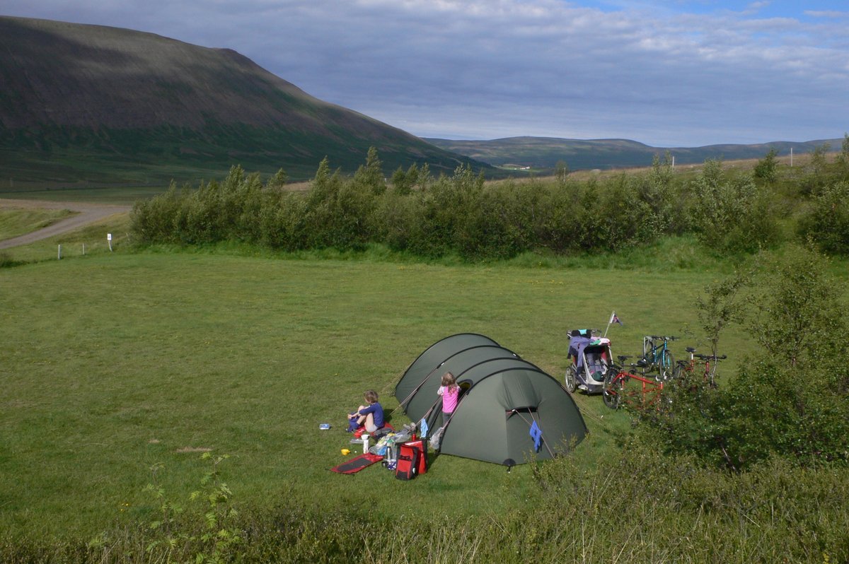 Daginn eftir rofaði til og þá var létt að hjóla um Ljósavatn og til Sigríðarstaða. Þar er lítið og einfalt tjaldsvæði – án rafmagns, eingöngu með kalt vatn og án bíla. Þar upplifðum við besta kvöld ferðarinnar – mitt í náttúrunni, kvöldsólin baðaði dældina sem svæðið liggur í og krakkarnir fóru í ævintýraleiki. Það þarf ekki mikið til að vera alsæl.