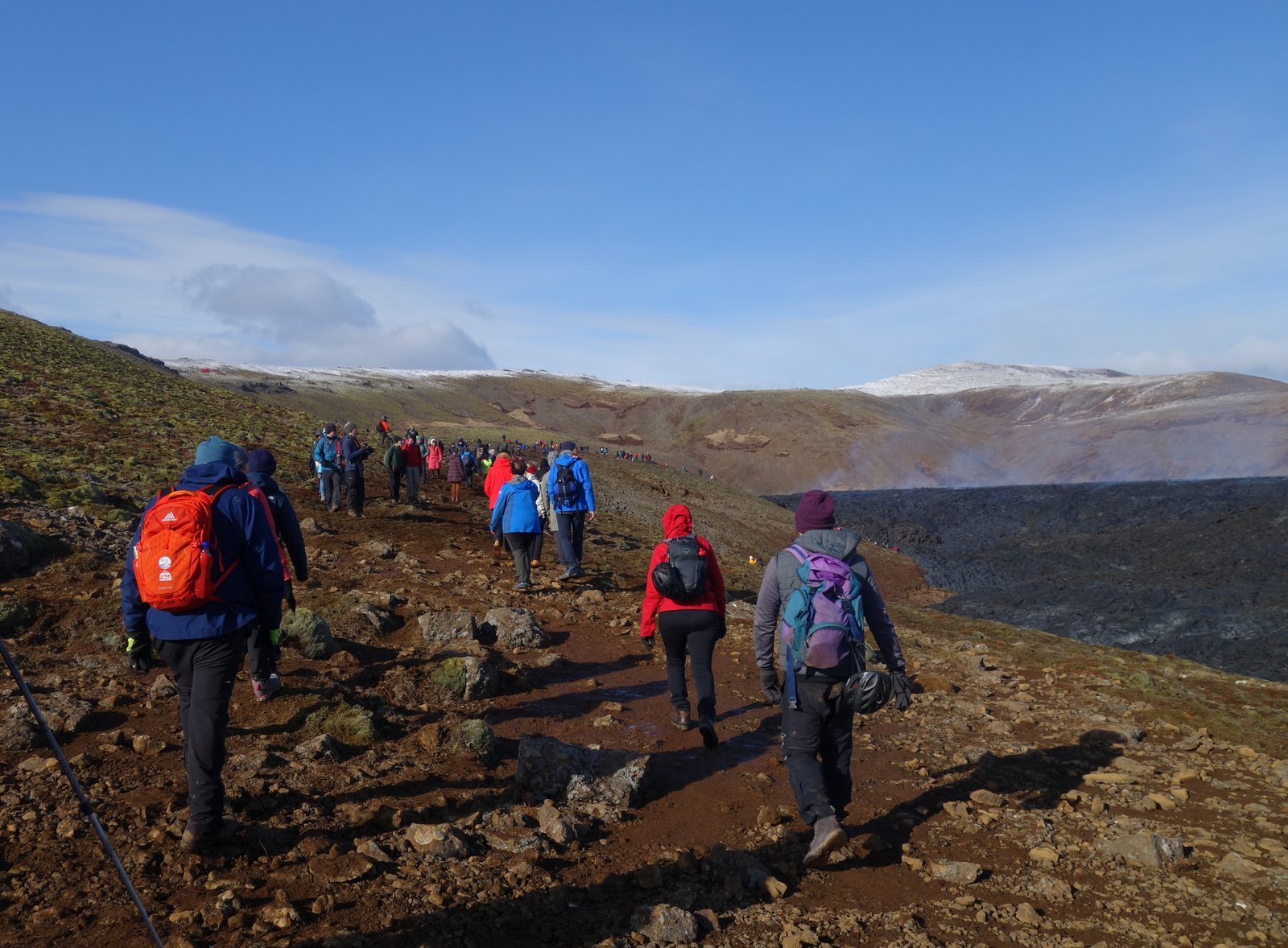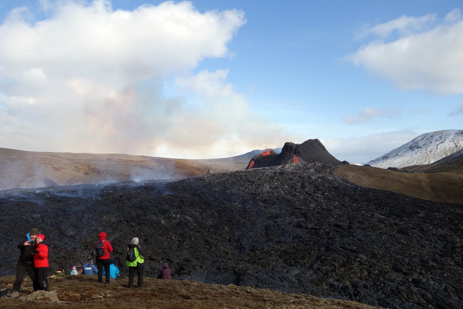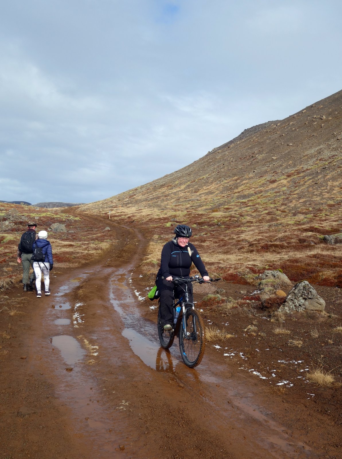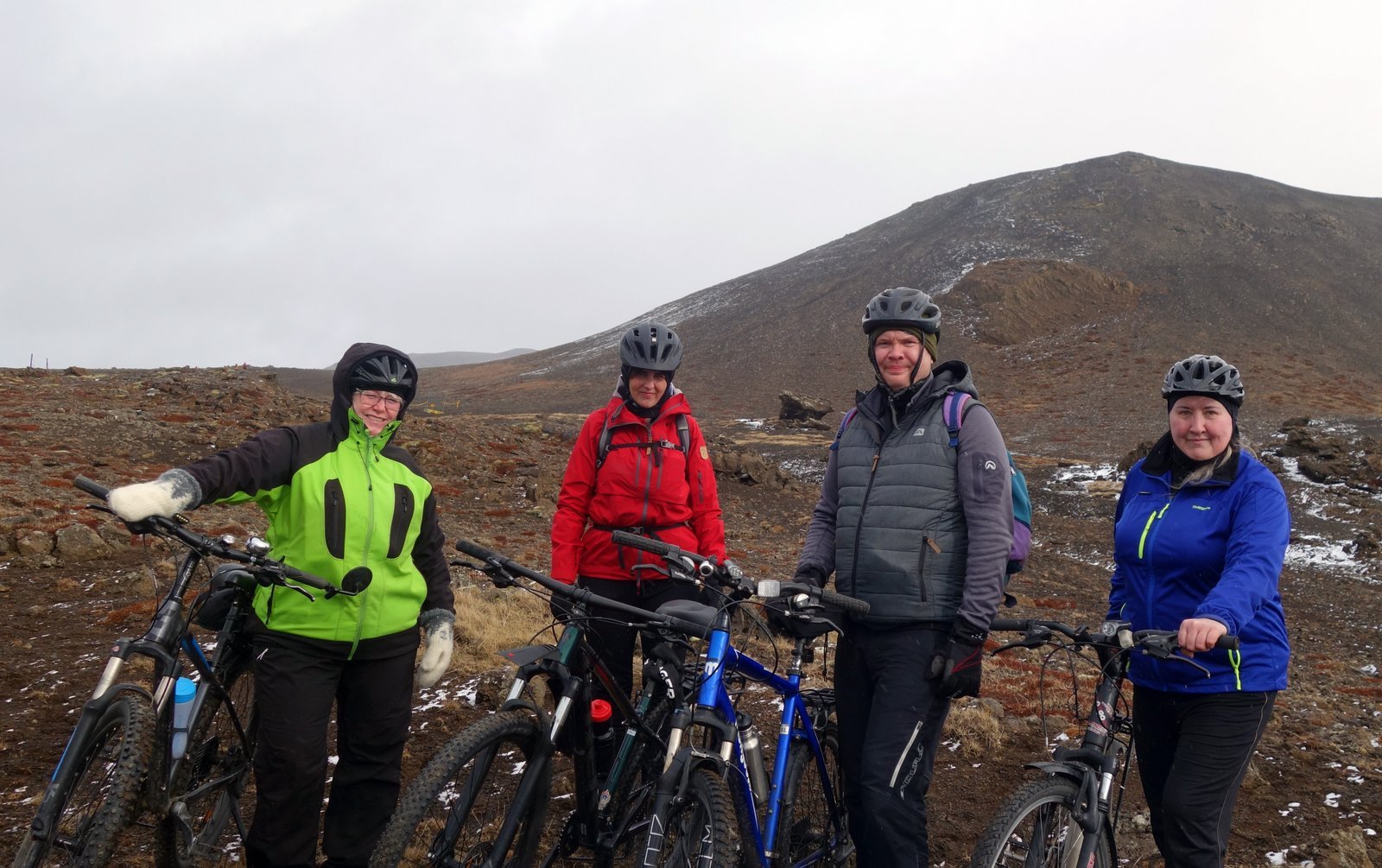 Það eru ekki allir sem ná að setjast í brekku alveg við eldgos, finna hitann á andlitinu og hlusta á skvampið, brakið og brestina sem móðir Jörð gefur frá sér. Við dvöldum í tæpa tvo tíma við gosið, fengum meira að segja einn þokkalegan jarðskjálfta á meðan við sátum dáleidd við stóra arineldinn, en að lokum urðum við að slíta okkur frá og feta okkur niður í mót. Eftir göngu er gott að liðka sig með því að hjóla, og við enduðum daginn á að hjóla slóða austan við Ísólfsskála. Deginum lauk á American Style, fátt betra en gúffa í sig hamborgara, franskar og kokteilsósu eftir ánægjulegan dag.