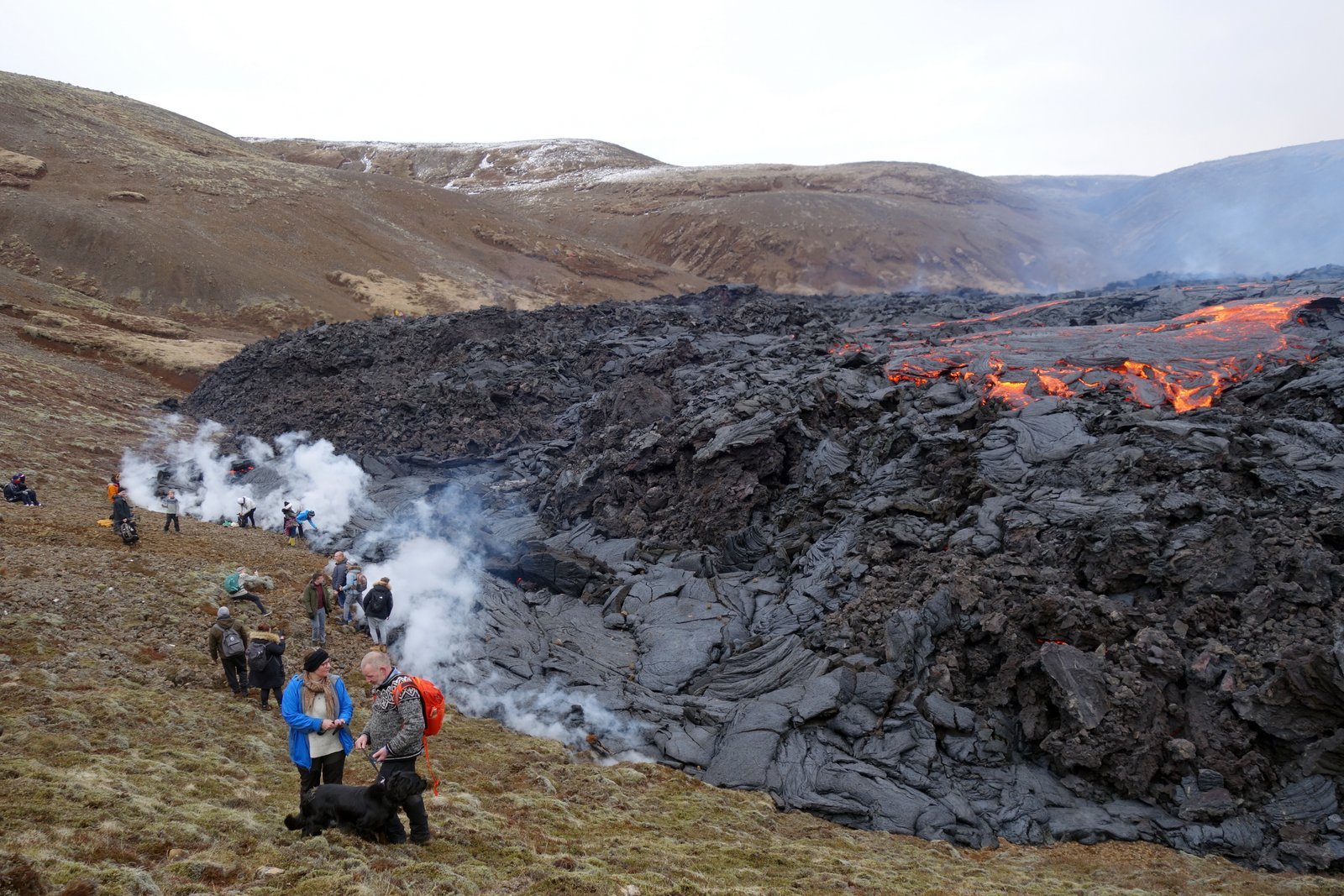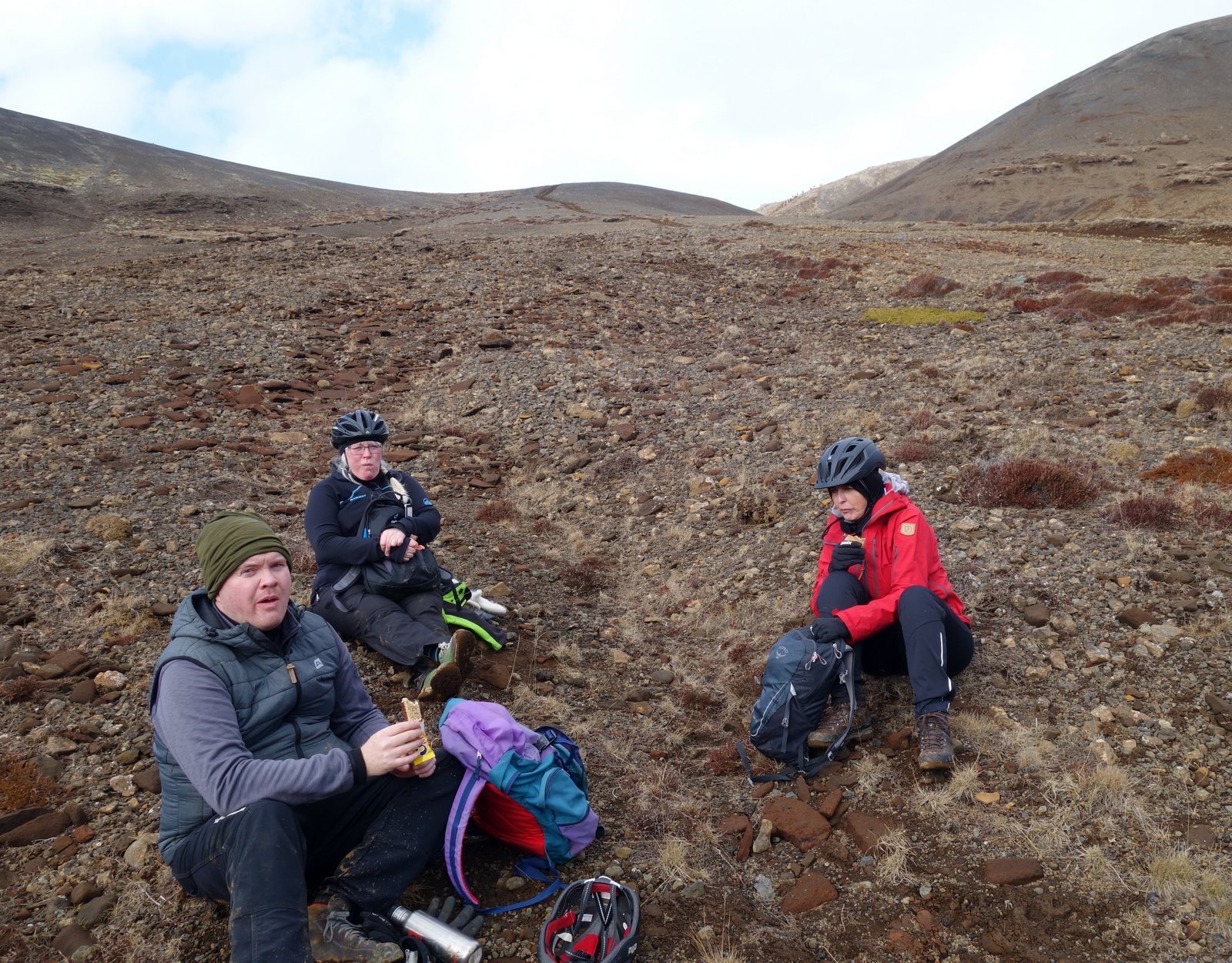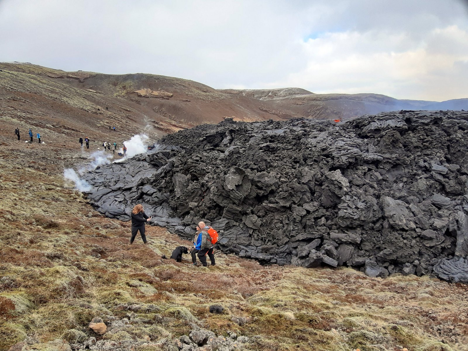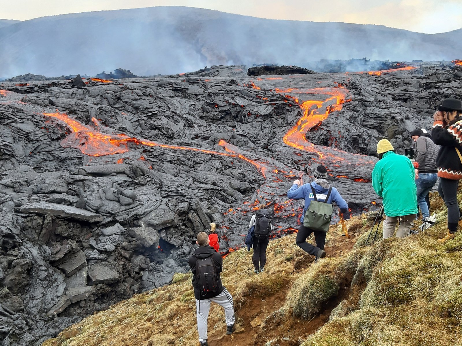 Það eru ekki allir sem ná að setjast í brekku alveg við eldgos, finna hitann á andlitinu og hlusta á skvampið, brakið og brestina sem móðir Jörð gefur frá sér. Við dvöldum í tæpa tvo tíma við gosið, fengum meira að segja einn þokkalegan jarðskjálfta á meðan við sátum dáleidd við stóra arineldinn, en að lokum urðum við að slíta okkur frá og feta okkur niður í mót. Eftir göngu er gott að liðka sig með því að hjóla, og við enduðum daginn á að hjóla slóða austan við Ísólfsskála. Deginum lauk á American Style, fátt betra en gúffa í sig hamborgara, franskar og kokteilsósu eftir ánægjulegan dag.