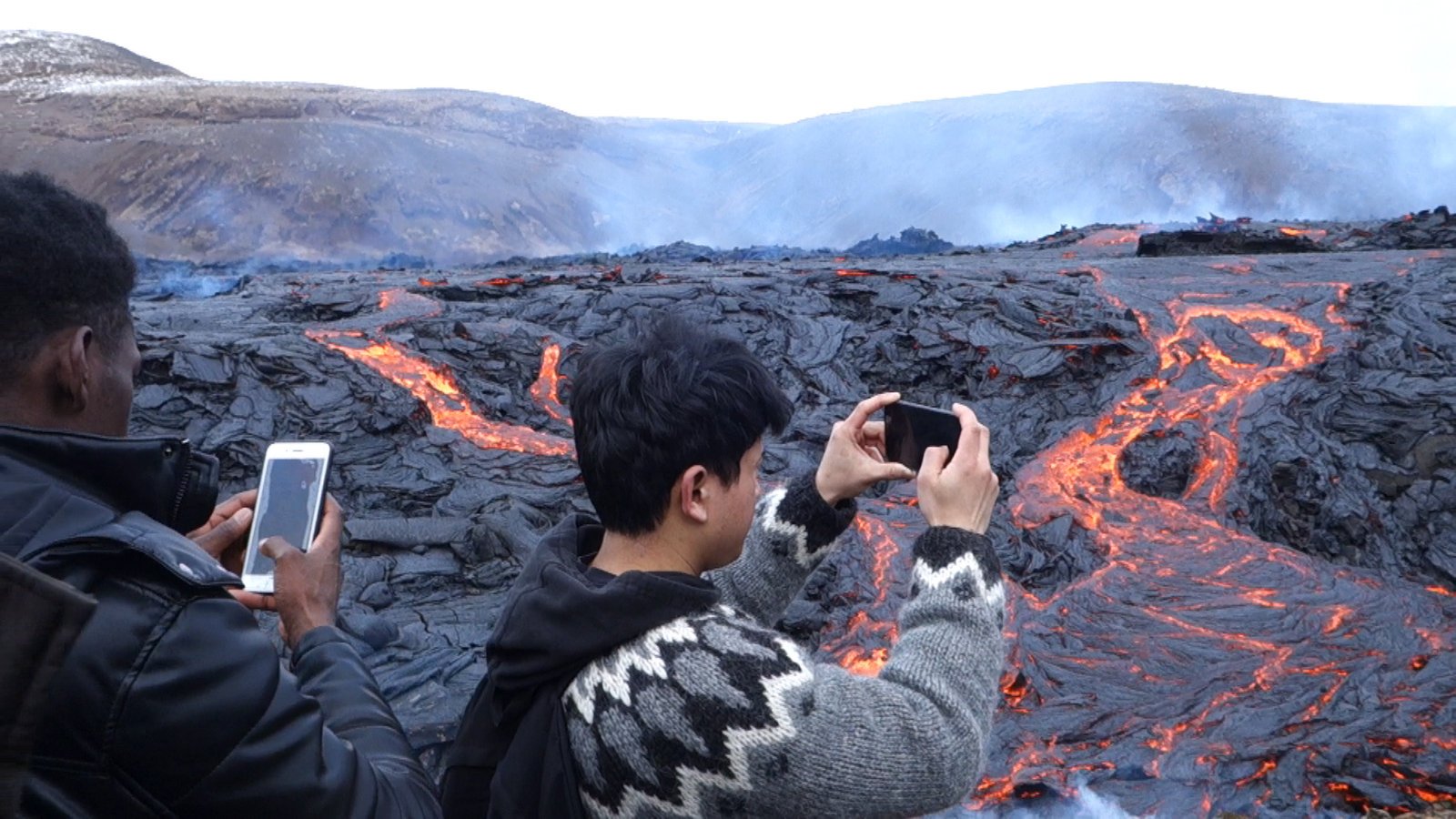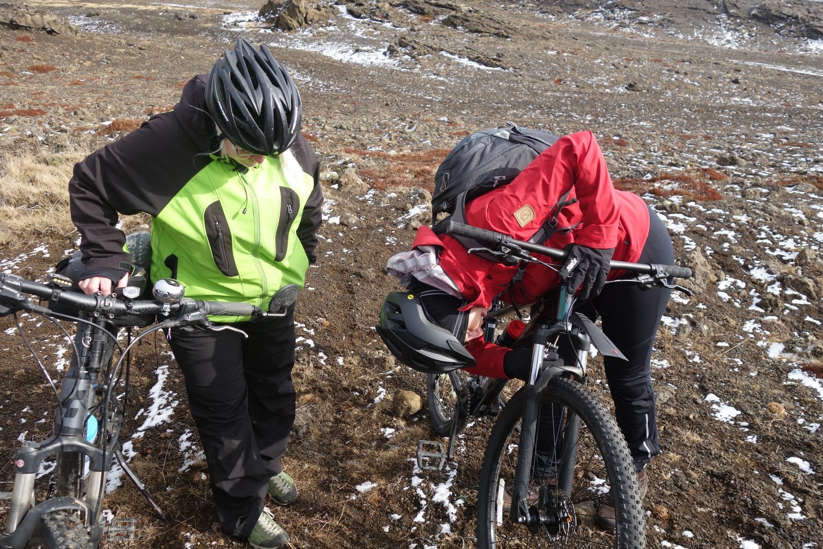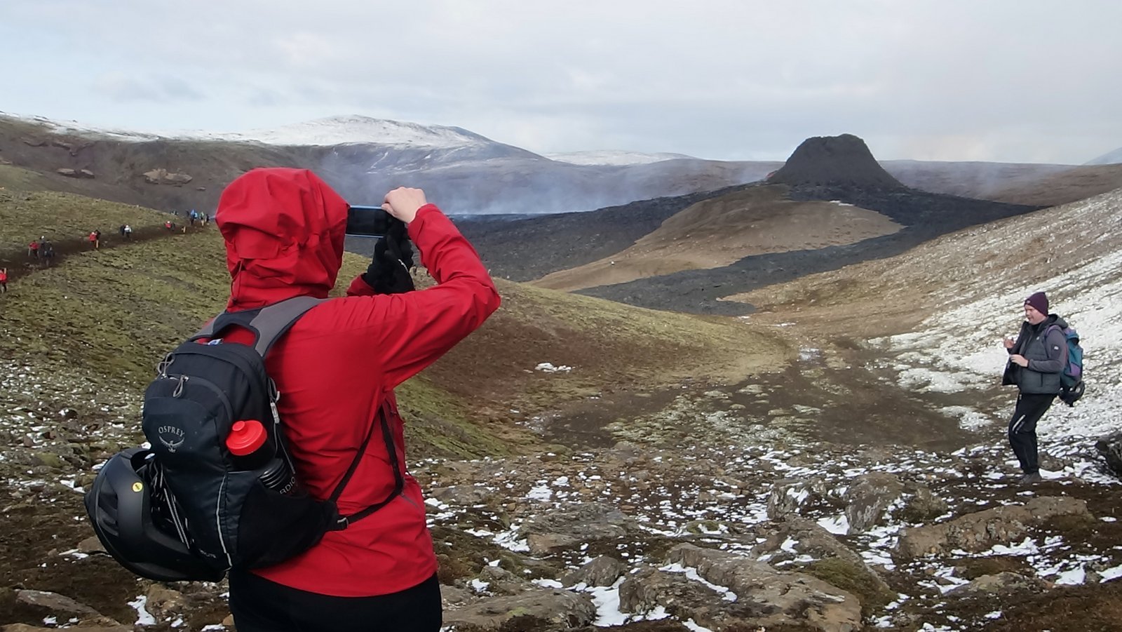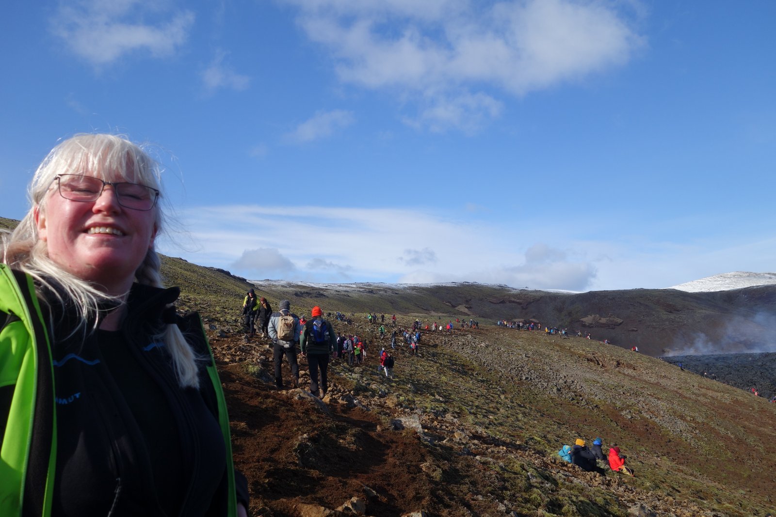 Það eru ekki allir sem ná að setjast í brekku alveg við eldgos, finna hitann á andlitinu og hlusta á skvampið, brakið og brestina sem móðir Jörð gefur frá sér. Við dvöldum í tæpa tvo tíma við gosið, fengum meira að segja einn þokkalegan jarðskjálfta á meðan við sátum dáleidd við stóra arineldinn, en að lokum urðum við að slíta okkur frá og feta okkur niður í mót. Eftir göngu er gott að liðka sig með því að hjóla, og við enduðum daginn á að hjóla slóða austan við Ísólfsskála. Deginum lauk á American Style, fátt betra en gúffa í sig hamborgara, franskar og kokteilsósu eftir ánægjulegan dag.