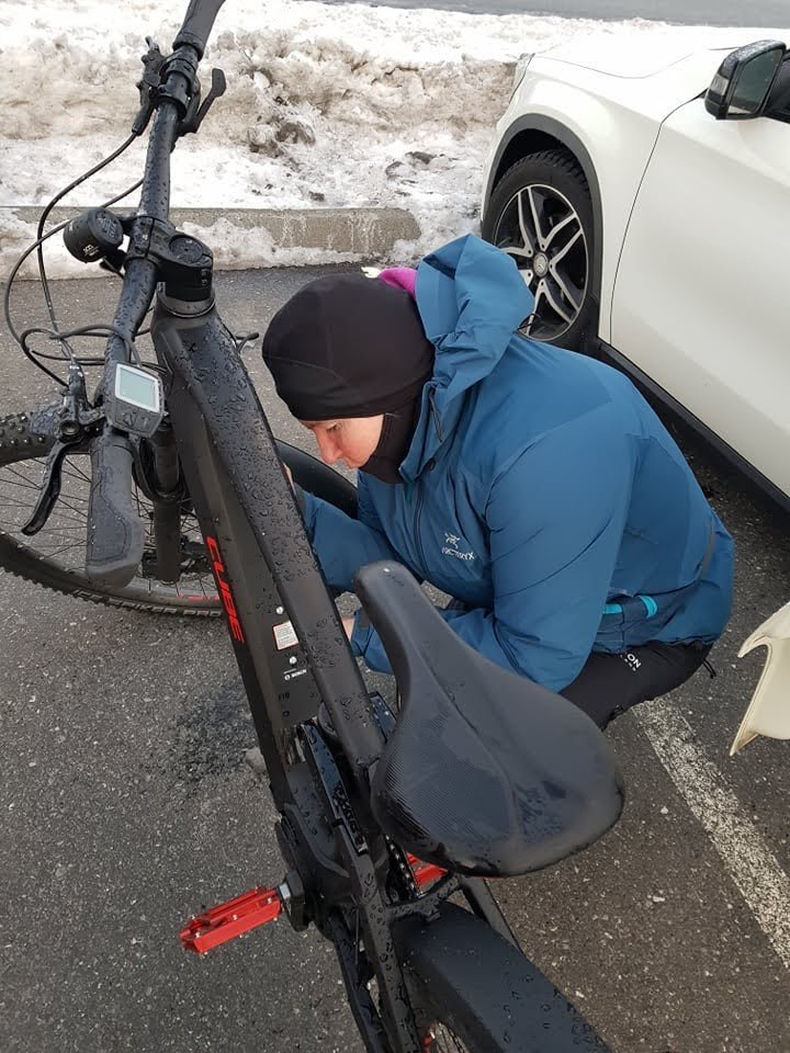 Allir komust heilu höldnu niður úr Úthlíðinni, en á bakaleiðinni þegar Siggi tók fram úr okkur sáum við að það vantaði framgjörðina á hjólinu hans. Bíddu, datt hún undan? Var þetta enn eitt atriðið á Murphy‘s law listanum? Með öðrum orðum: Allt sem getur farið úrskeiðis fer úrskeiðis. En nei, Siggi tók hana sjálfur af, svo hjólið myndi ekki taka niðri í sköflunum á leiðinni.