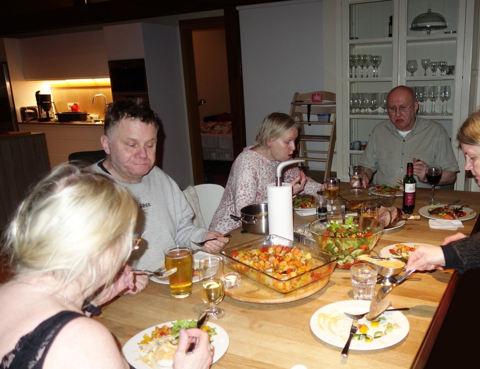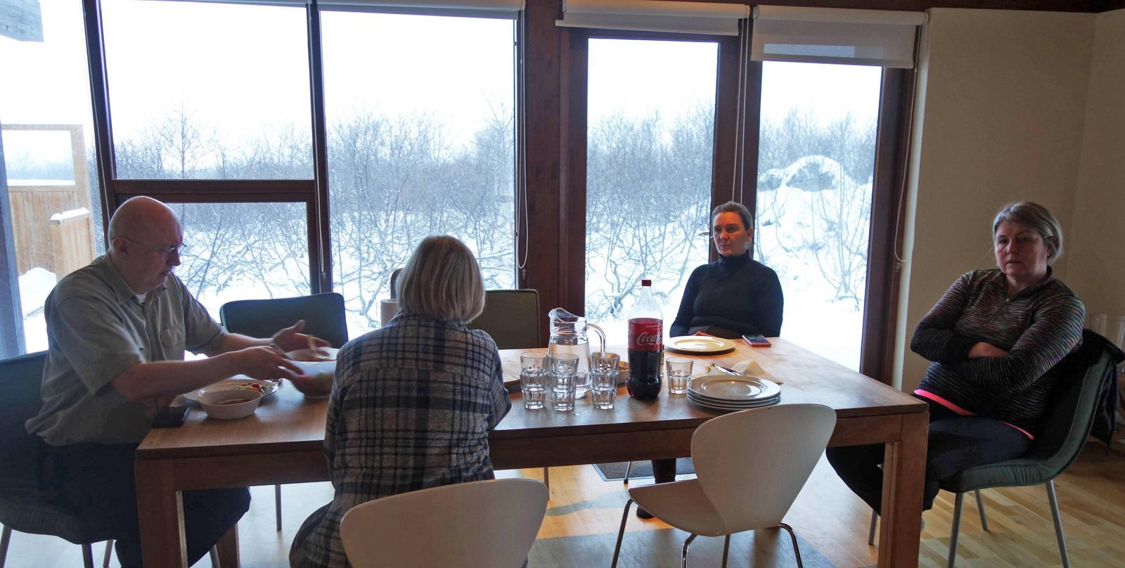 Bústaðurinn sem við leigðum af stéttarfélagi var hrikalega flottur og vel útbúinn. Jafnvel full vel. Lögðust allir á eitt við að finna út hvernig ætti að kveikja á eldavél og ofni. Sko. Í bústöðum ættu að vera einföld tæki. Ofn. Hitastig og tegund (blástur, undir- eða yfirhiti og grill). Tveir hnappar takk. Ekki 8 með alls konar útfærslum og virkni eftir því hvort hnappi er snúið til hægri eða vinstri. Við ætluðum ekki að skjóta geimflaug til tunglsins, bara hita læri, ofnbaka grænmeti og laga sósu. Okkur gekk líka illa að kveikja og slökkva ljósin. Fullt af slökkvurum, fullt af dimmerum og kúnstin að para þetta saman, þannig að bústaðurinn væri upplýstur eða öll ljós slökkt, úff. En það hafðist nú allt saman að lokum og við gæddum okkur á góðum mat og guðaveigum við rómantíska birtu.